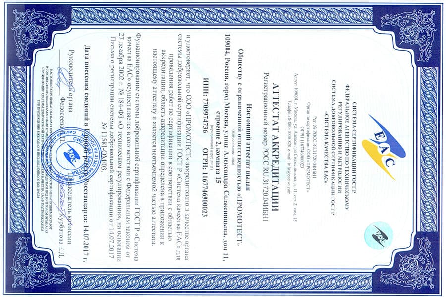 • Многолетний опыт в сфере сертификации С каждым годом мы расширяем область аккредитации